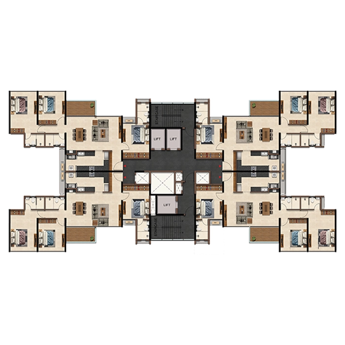 Low-density design with only 4 units per core served by 3 lifts, offering enhanced privacy, excellent ventilation & spacious personal zones